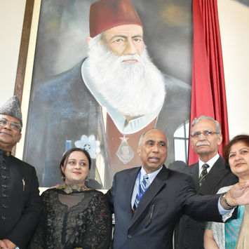 Dr. Asma Kazmi has created many portraits, including those of Pranab Mukherjee, the President of India. Dr. Naveen Chandra Ramgoolam, the former Prime Minister of Mauritius, Farooq Abdullah, a leader from Kashmir; Angela Merkel, the Chancellor of Germany; Queen Elizabeth II of the United Kingdom; and Ayatollah Khomeini, the Iranian religious reformer. Bediuzzaman Said Nursi, Mohiuddin Ahmed, Allamah Ali Naqi Naqvi, Ibn Sina, Ibn Al-Haytham, Naseeruddin Shah, and approximately one ex- Vice Chancellor, around twenty one others, as well as many portraits of Sir Syed Ahmed Khan, Frank Islam and his wife, Professor Ved Prakash, and O.P. Singh, DG (Director General) of Lucknow.